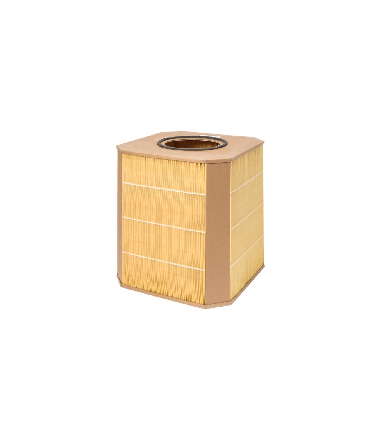 La cartouche est composée de fibres de cellulose façonnées en carré avec des coins en carton pour garantir un flux d'air égal sur le filtre pour une répartition homogène de la pollution sur toute la surface du filtre. Lorsque le filtre est complètement saturé, il doit être remplacé.
