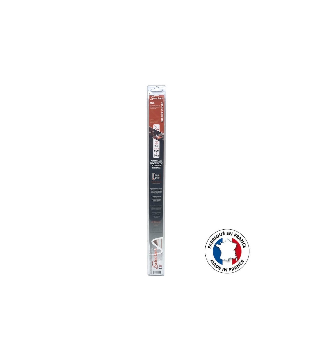 Baguette de brasure CUIVRE Ø2.0 PHOSBRAZ M70- Blister de 20 baguettes