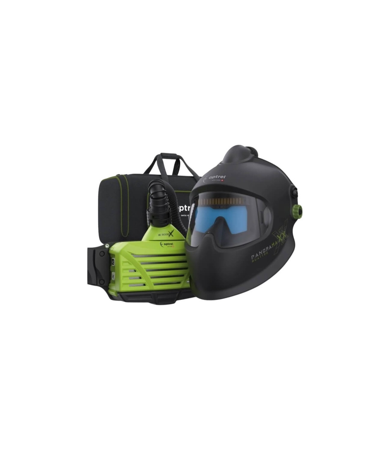Pack Optrel Panoramaxx Pure Air Quattro avec système e3000X pour travailler en soudage intensif avec air filtré en continu.