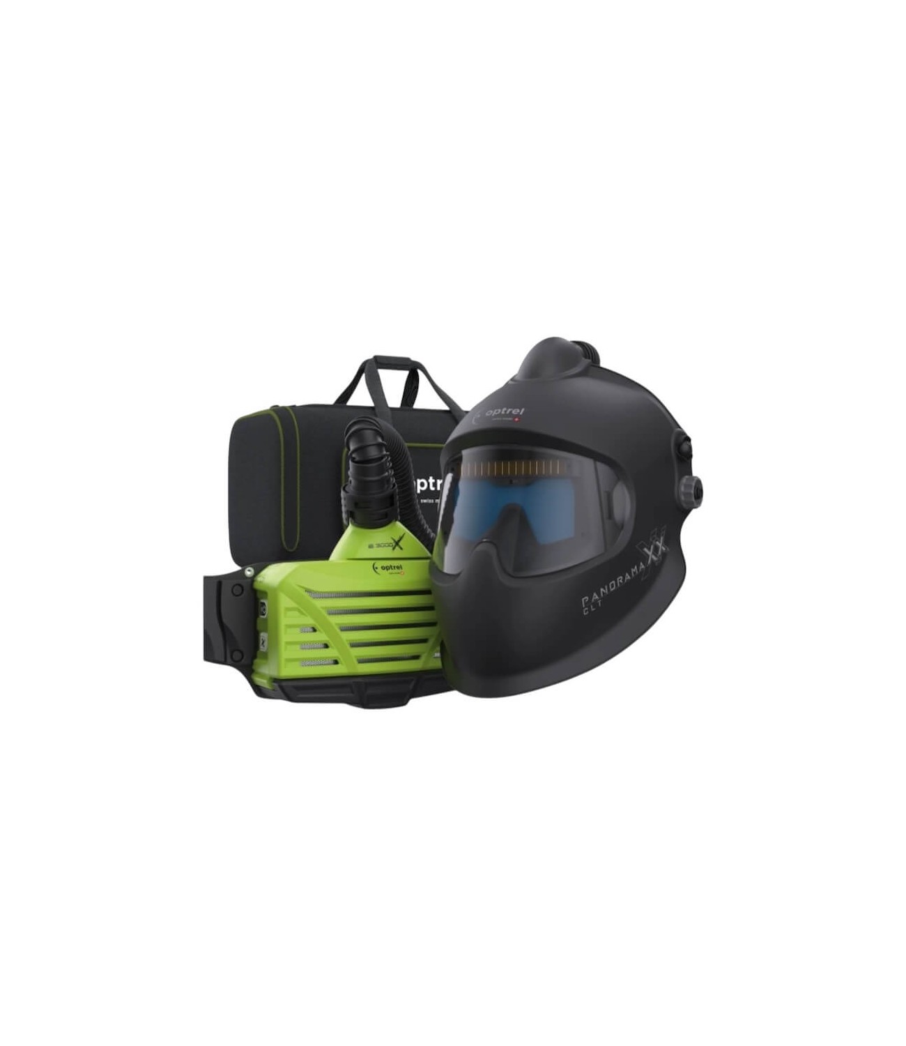 Pack Optrel avec cagoule Panoramaxx CLT et système ventilé e3000X pour travailler en soudage avec air filtré et vision précise.