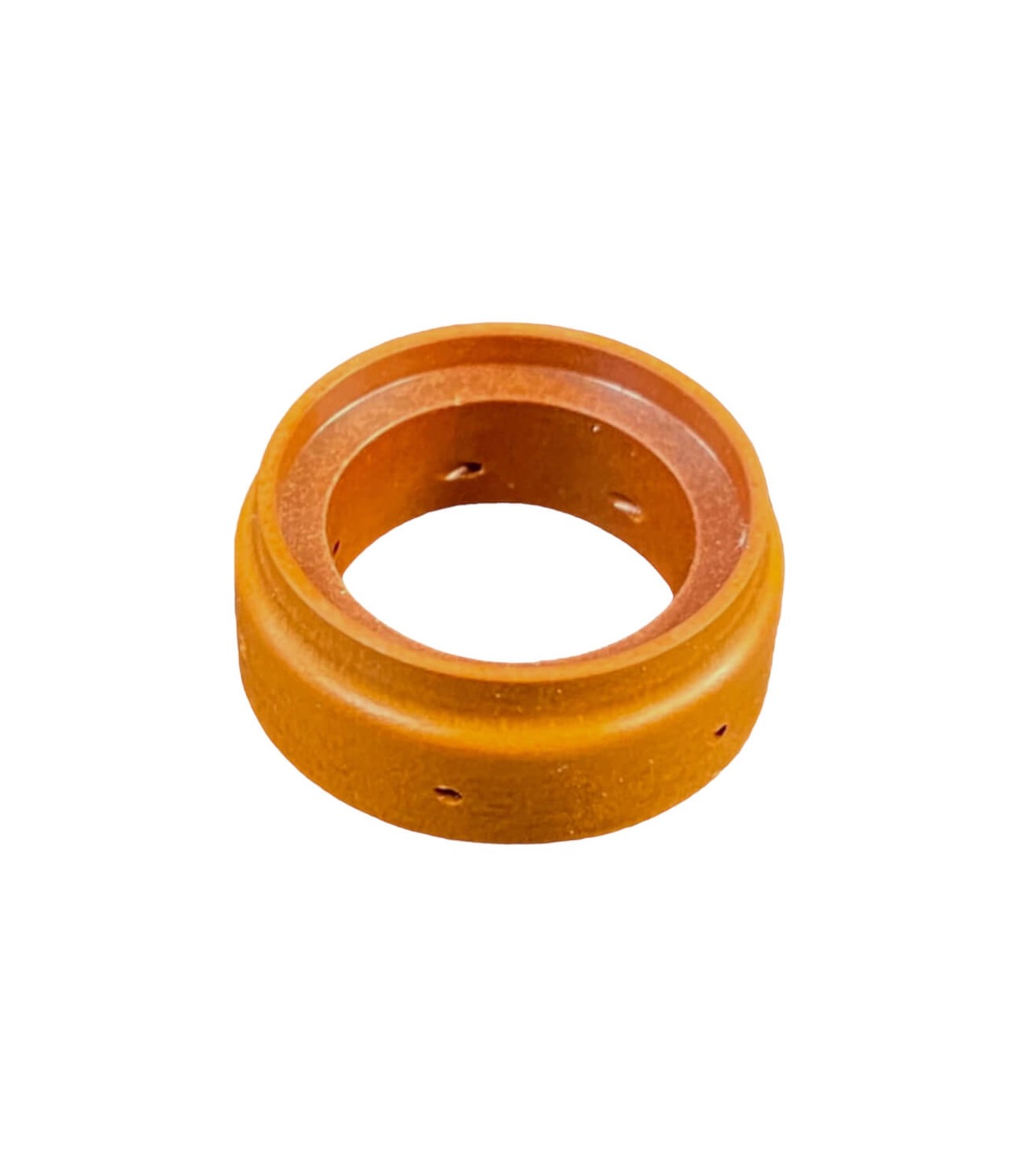 - Afin de ne pas endommager les pièces ainsi que la torche plasma, il est important de vérifier l'état d’encrassement et d'usure des orifices du diffuseur de gaz. - Le diffuseur de gaz est composé d'orifices créant un vortex tourbillonnant. Il permet de diriger et focaliser l’arc pour une plus grande précision mais également de refroidir les pièces afin d’augmenter le rendement de celle-ci. |