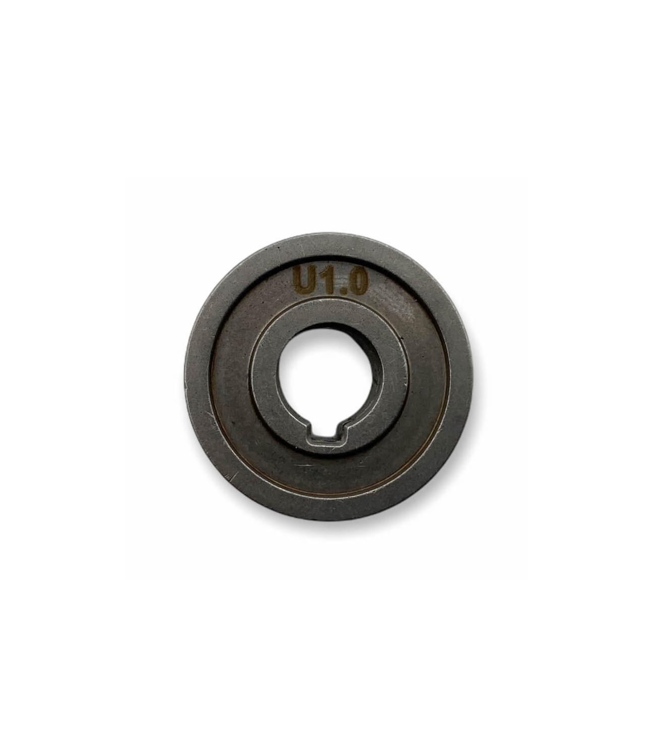 L’aluminium est un matériau fortement malléable, ce galet spécial alu avec une gorge en profil “U” permet de ne pas déformer le métal d’apport.