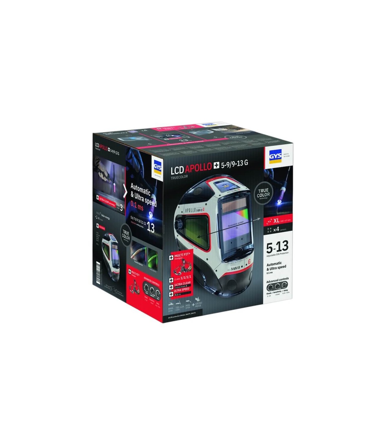La cagoule de soudure GYS APOLLO+ 3/5-13 G TRUE COLOR offre une protection complète et un confort supérieur pour les soudeurs exigeants. Grâce à son filtre auto-obscurcissant à teinte variable et sa technologie TRUE COLOR, elle garantit une vision naturelle du bain de fusion. Adaptée à tous types de soudage (MMA, MIG/MAG, TIG), elle combine sécurité, précision visuelle et confort d’utilisation au quotidien.