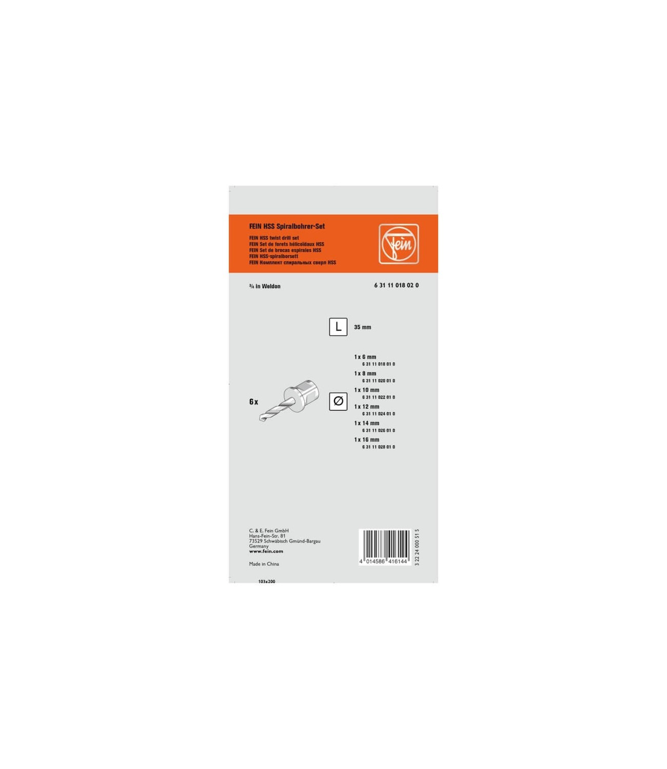 Le set de forets hélicoïdaux HSS FEIN avec porte-outil Weldon 3/4" est conçu pour couvrir rapidement les diamètres les plus utilisés, tout en gardant une mise en œuvre simple et reproductible. Il comprend 6 forets hélicoïdaux HSS de Ø 6, 8, 10, 12, 14 et 16 mm, rangés dans un coffret plastique pratique. La profondeur de coupe annoncée est de 35 mm.