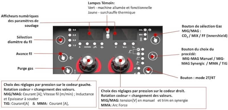 - 64A en courant de soudage en fonctionnement constant (100%)