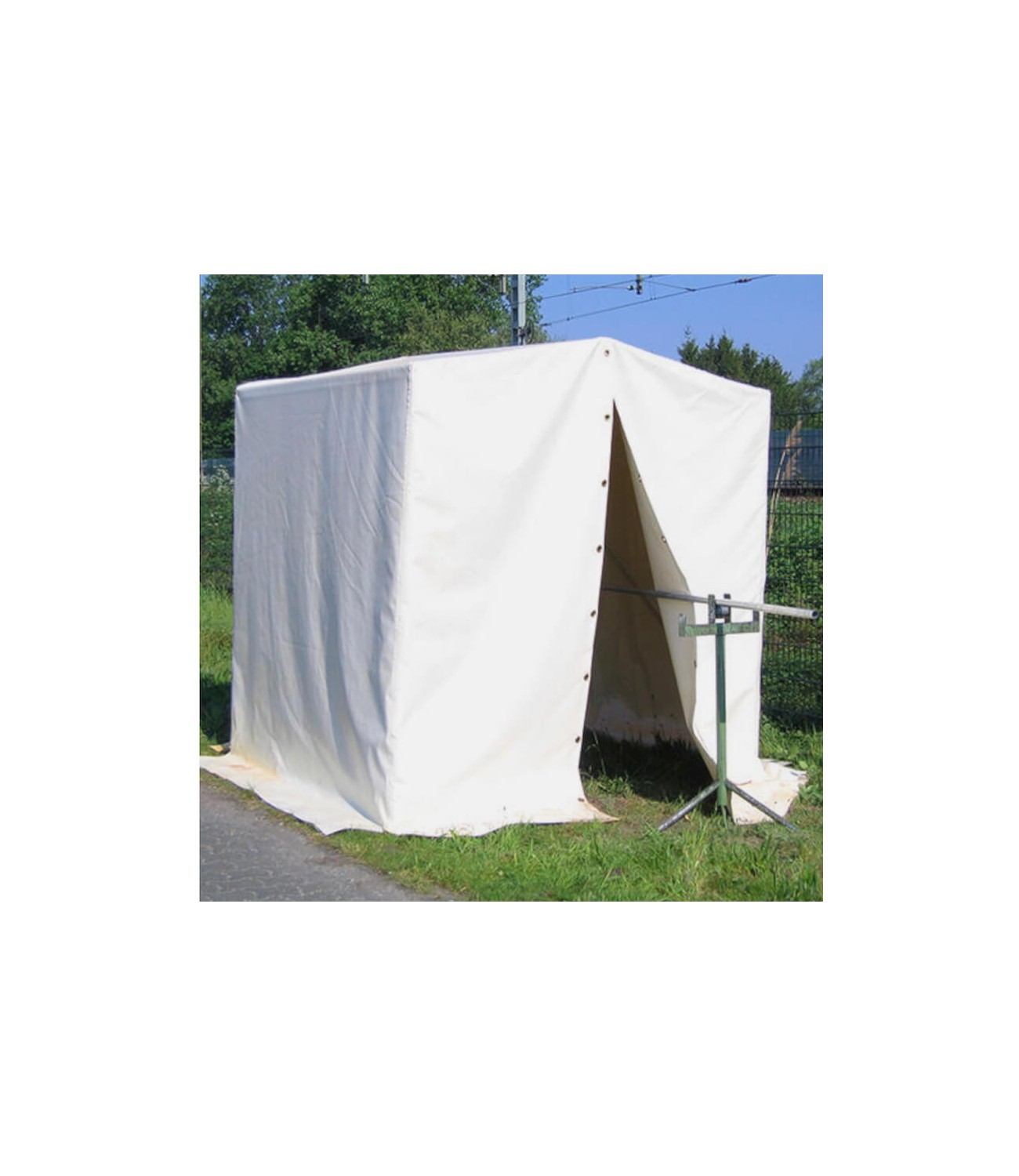 Tente de soudage équipé d'une toile en PVC blanc résistant au feu de certification M2. La structure est composée de tubes galvanisés de 25mm de diamètre, garantissant une durée de vie optimale. Facile à monter et démonter, cette tente protègera le soudeur du vent, de la pluie et des UV du soleil lors des opérations de soudage.
